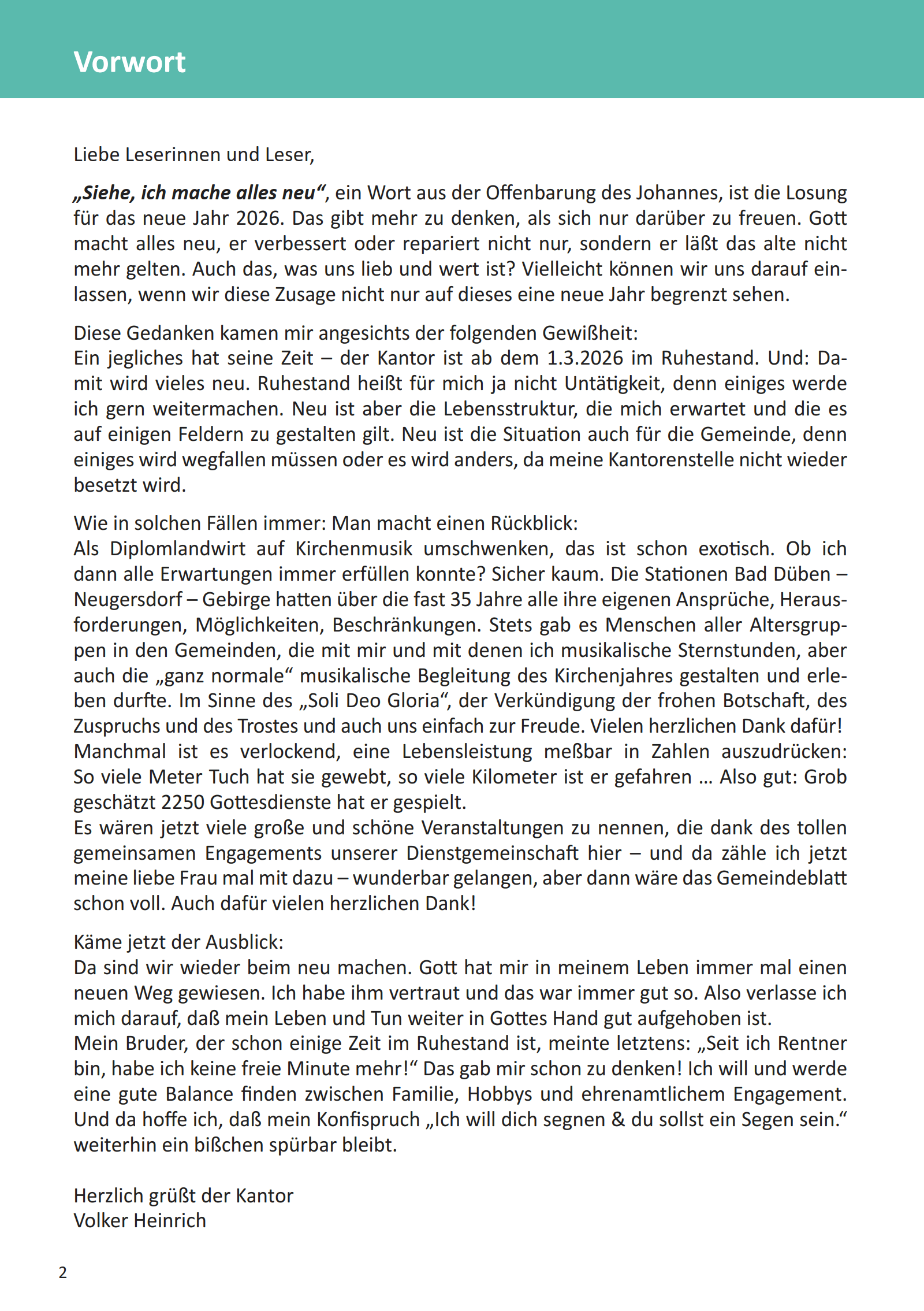 - 01.03. 14 Uhr Gottesdienst mit Verabschiedung von Kantor Volker Heinrich in Olbersdorf, Kirchencafé