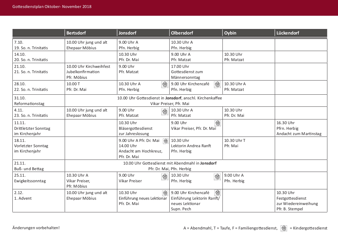 Gottesdienste Okt. u. Nov. 2018