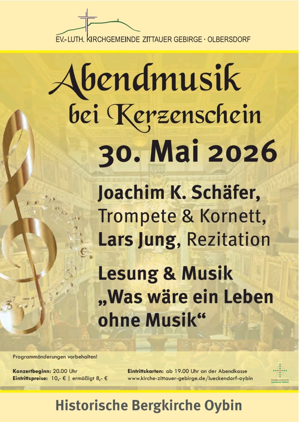- 30.05., 20.00 Uhr Bergkirche Oybin Abendmusik bei Kerzenschein. Joachim K. Schäfer, Lars Jung